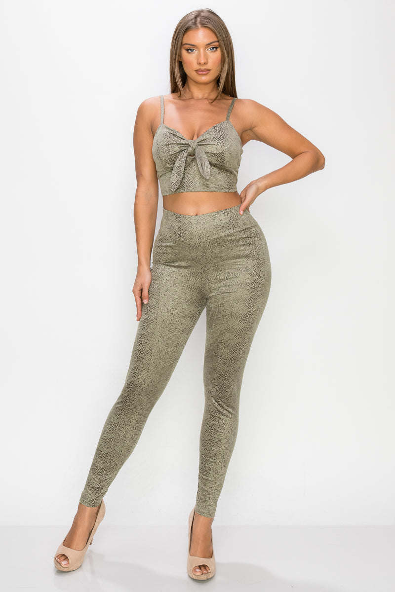 Embossed Snake Print Top And Leggings Set