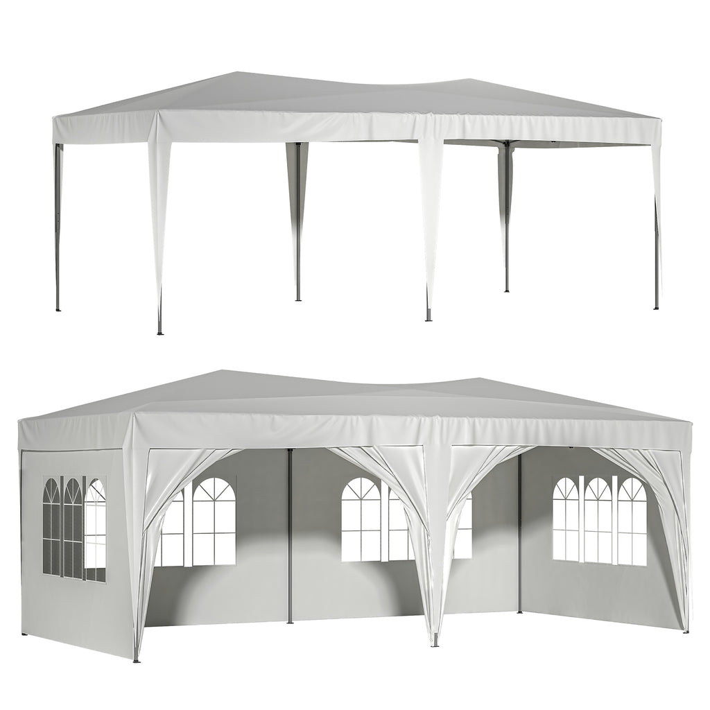 Removable Sidewalls:4 large church style window panels are designed for air circulation and let light in. 2 sidewall panels with zippered are designed for easy walk-in and out. Sidewalls with velcro fasteners are easy for assembly and removal to meet all your needs, no matter you want to hold a party inside the canopy or make it more freely.