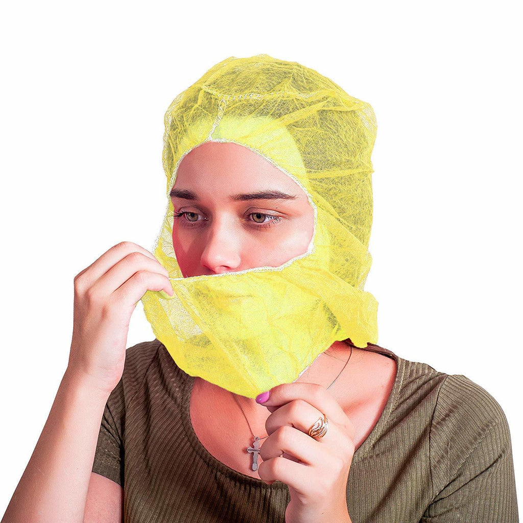 Disposable Hood Cover These head covers come in a pack of 100 pieces and are yellow in color. As industries now have strict hygiene rules; hair coverage is a must have. From the food industry and industrial needs to every aspect of protective apparel within these industries; using the right kind of polypropylene – non woven noods are essential to workplace safety and hygiene. These disposable caps are great for multiple industries including manufacture industries and cleanroom services. Ideal for use in restaurants and food processing units. Soft lightweight cap made from non-woven fabric; fully elasticated. This lightweight headwear with extra-tight weave reduces the chances of falling of hair into food while cooking or serving. Being soft; light-weight and breathable for user comfort; our hood-like caps are incredibly comfy to be worn over a long period of time. MONEY BACK GUARANTEE: Yellow poly caps are backed by 100% guarantee. If you aren't fully satisfied with product you'll receive your money back!