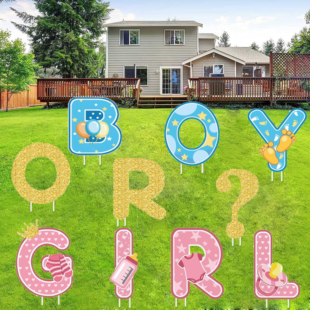 Product Description:/b brGender reveal yard sign are wonderful for that special baby shower or the announcement the new baby arrival. Let everyone in the neighborhood guess "It's A BOY or It's a Girl!" with this vibrant colors sign.brBaby Yard Sign, photo props: You can take beautiful and memorable photos or selfies, which could help boost memorable and pleasant atmosphere of baby shower party, make you and your friends more joyful to enjoy the party.brWe use 4mm weatherproof corrugated plastic, it can be used for a long time among your family, friends and neighbors, making the baby shower party more meaningful. We have included a Packing box, which is convenient for you to store, carry and give away for reuse.p /PMaterial:/b brGender Reveal Yard Signs: pp plastic sheetbrGender Reveal Lawn Decorations Size: about 10-15 inches longbrStakes Size: approx 11.8 inchesp /PPackage Includes:/b br10 x Gender Reveal Lawn Decorationsbr20x Stakesp /P