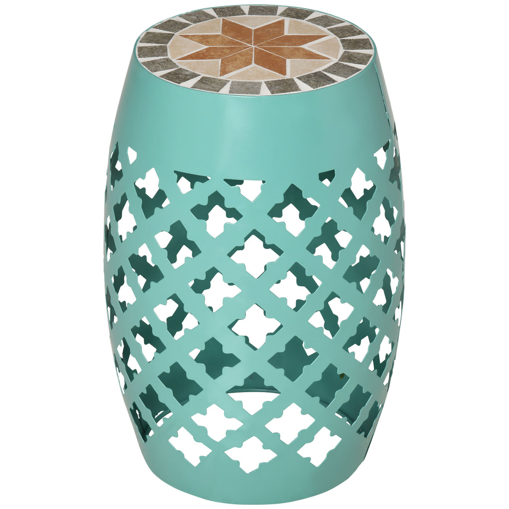 Attractive Aesthetic: The top mosaic pattern and the drum style with hollow-carved design lend the outdoor end table to a vintage style but will easily fit into any decor setting.