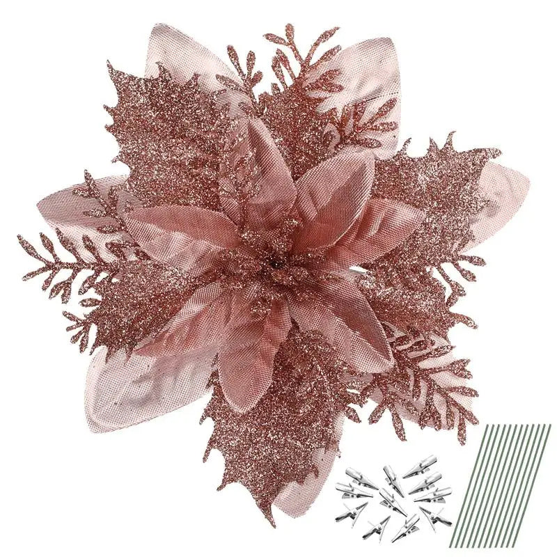 Vivid Christmas artificial flowers: they can be used in many places to create a romantic and floral atmosphere, glitter and vibrantly colored with real touch.