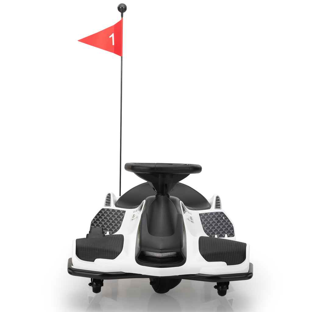 [Enjoy Drifting Excitement]: Driven by a powerful 12V motor, this drift car with a flag and 360-degree rotating wheels can achieve the thrill of drift racing when stepping on the foot pedal and turning to the high speed (1.86-5 mph).