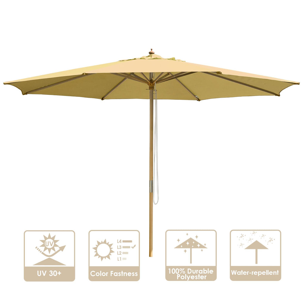- This 13ft 8 ribs retro wooden frame patio umbrella is classic and never out of date, which provides more coverage for your patio, garden, backyard and other outdoor parties