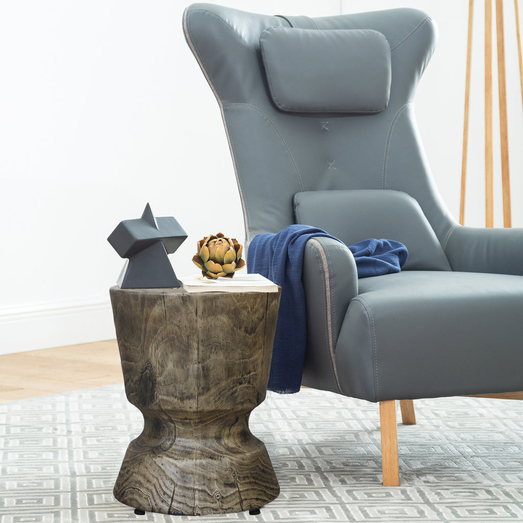 Side table in TERRAFAB material. TERRAFAB technology makes all weather;durable and lightweight furniture that looks likewood,stone or concrete. The Terrafab material ismade from naturally occurring inorganic mineralcompounds layered with fiberglass for strength.