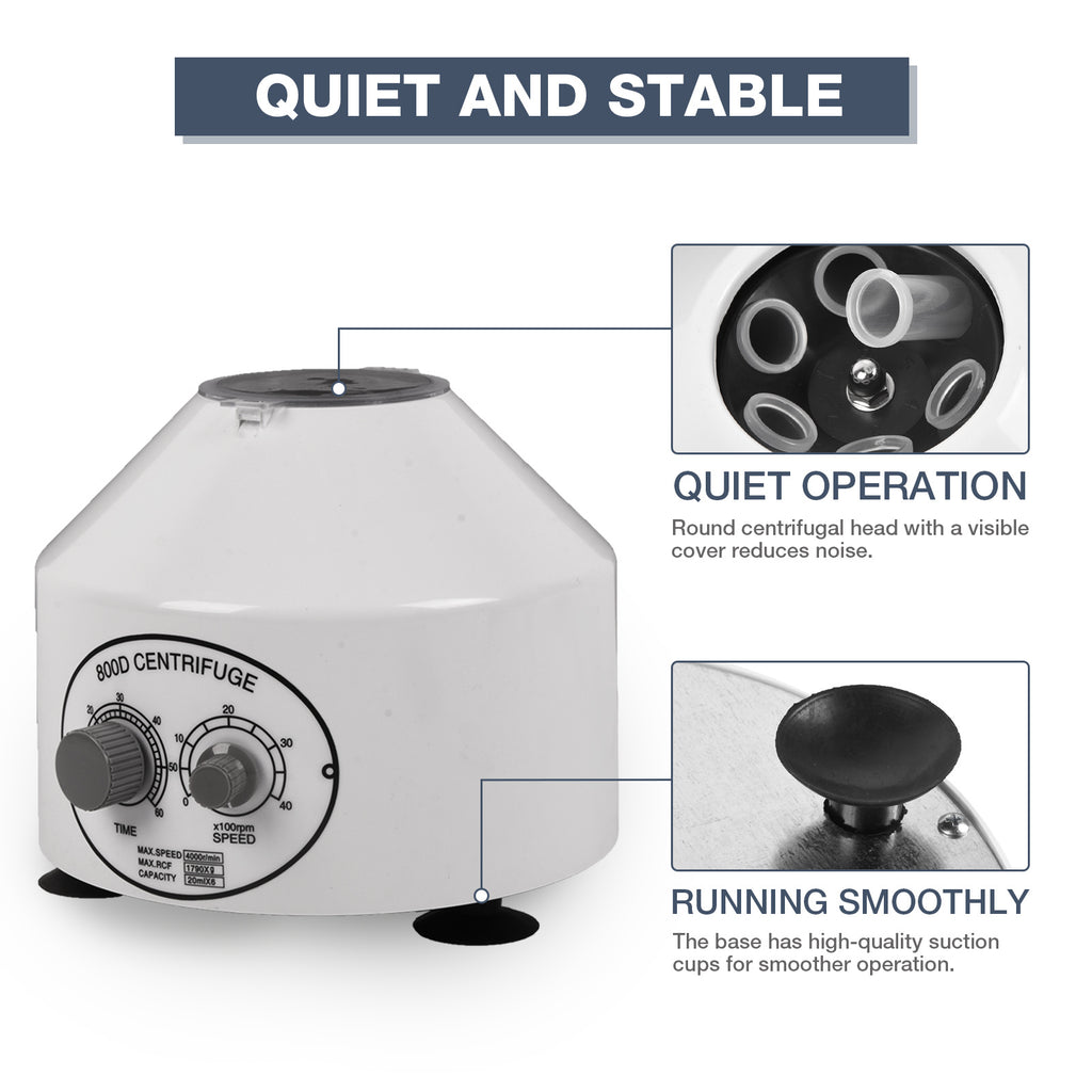 3.Easy to Control: Benchtop centrifuga is equipped with speed & timer control, and clear control panel. The centerfuge machine shell is made of high-strength plastic. Structure is simple and easy to operate this lab centrifuge.