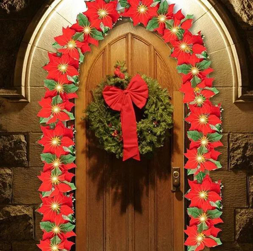 1.Package includes - 2pcs poinsettia garlands with red berries,holly leaves and LEDs.