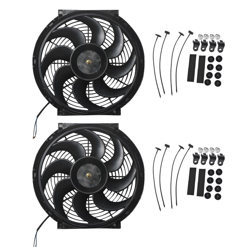 4.8 Blades 12V 90W 14 Inch radiator engine cooling fan with mount brackets and tie straps kit.