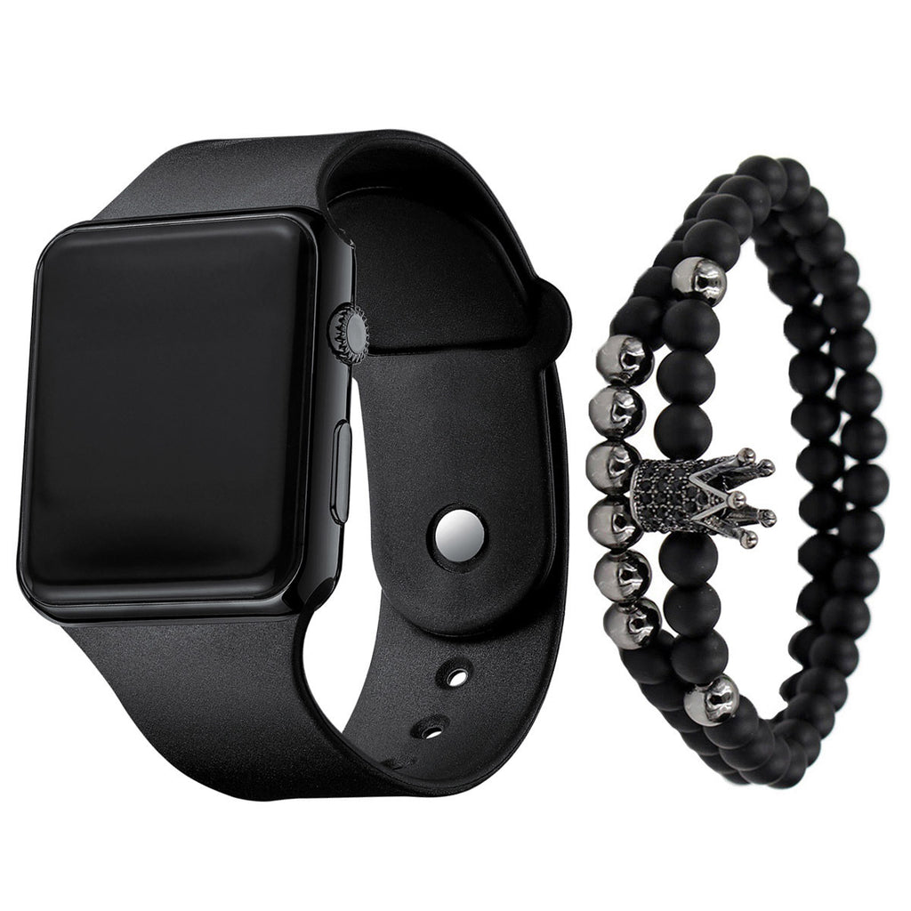 2pcs/set Square Silicone Digital Watch + Crown Bracelet Fancy Women Watches Jewelry Sophisticated And Stylish Women Watch