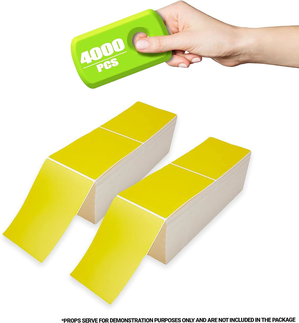 4000 Pack Thermal Transfer Fanfold Labels 4" x 6" Yellow. Perforated Self-Adhesive Rolls. Mailing Postage. Printing Paper. Blank for Shipping; barcoding