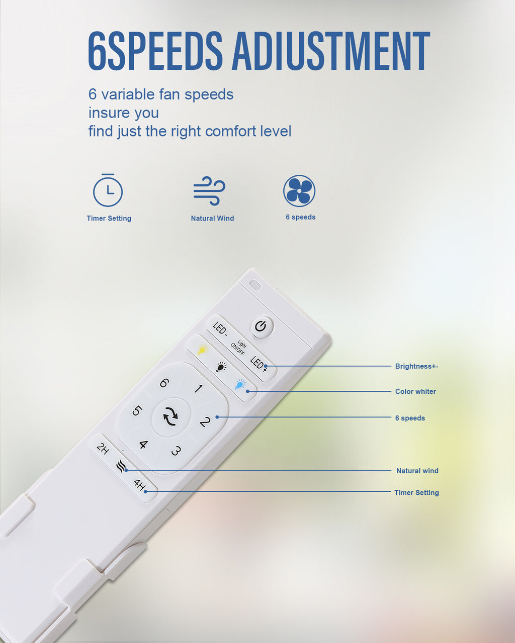 Remote-Controlled Convenience: The 52" ceiling fan comes with a remote control, offering 6 wind speeds, 2-level timer adjustment, and reversible blade design for year-round comfort.