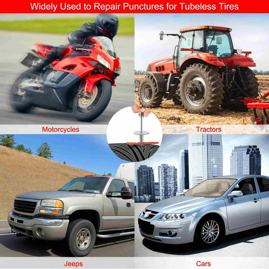 *Universal Fits*:Can be used to repair punctures for tubeless tires of ATVs,tractors,lawn mowers,trucks,jeeps and cars.