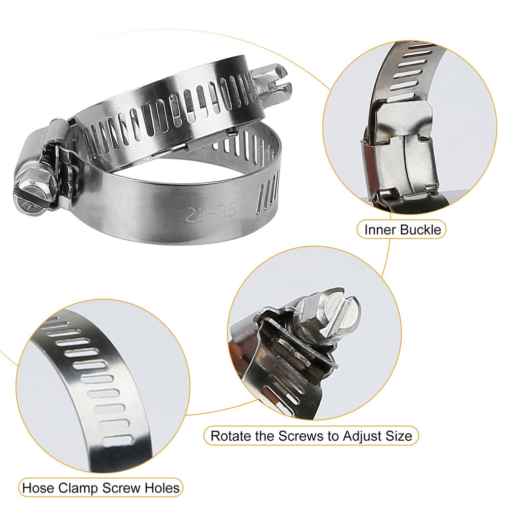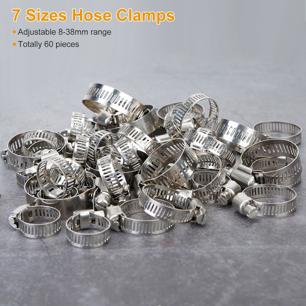 **Multiple Size Selections*:Our tube clamp assortment kit is adjustable with wide size range from 8 to 38mm/1/3-1.5 inches. Fit Hose Diameter:8-12mm; 10-16mm; 13-19mm; 16-25mm; 19-29mm; 22-32mm; 25-38mm. Suitable for various pipes.