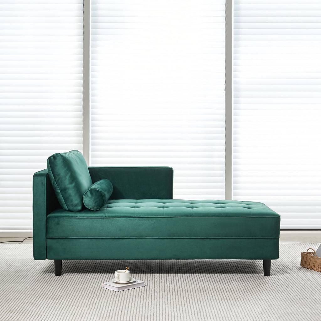64" Velvet Chaise,Mid-Century Modern Chaise Furniture,Sleeper for Living Room,Apartment,Tool-Free Assembly. (Green)