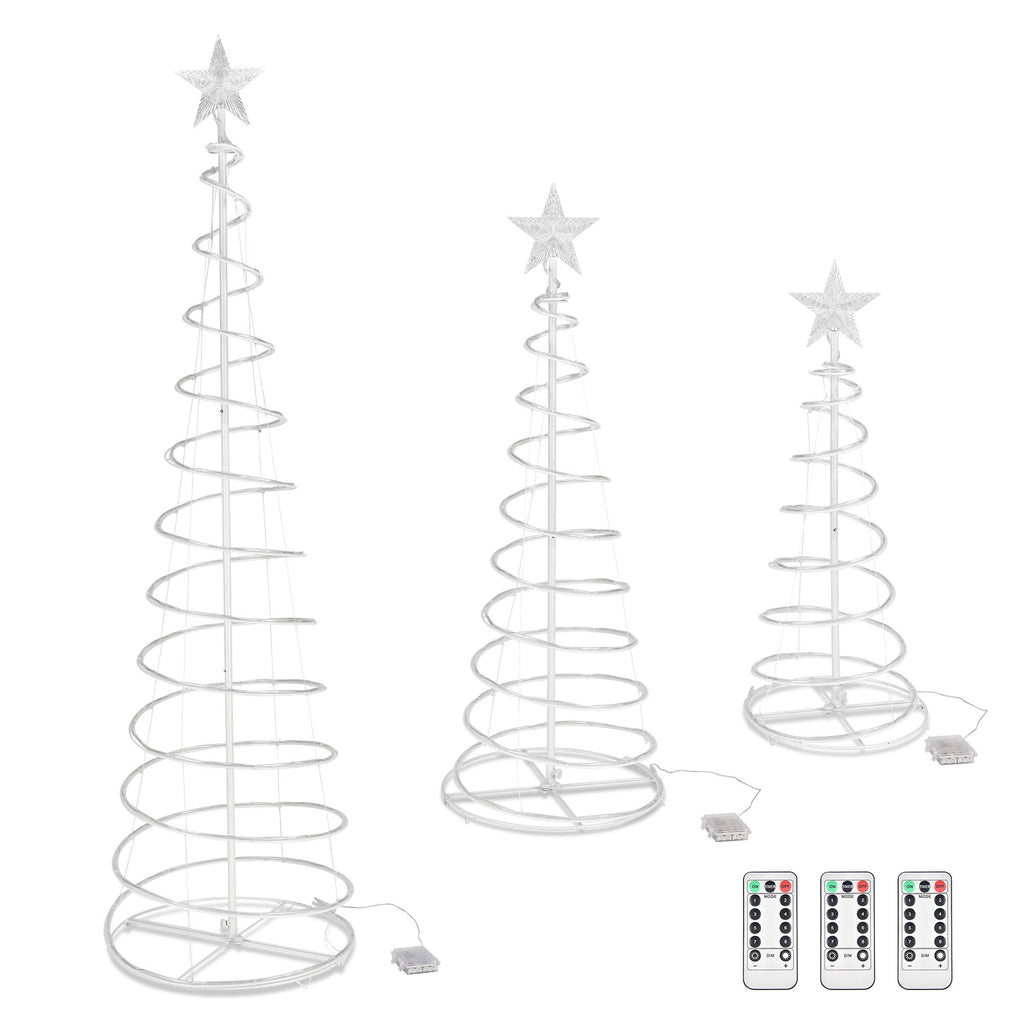 - Christmas Decoration - LED Christmas Lights Set contains 3 pieces of spiral LED Christmas trees with star finial which are 6ft, 4ft & 3ft in height, along with 348 pcs RGB LED beads in red, blue, green & yellow colors shining and twinkling to make your night full of fun