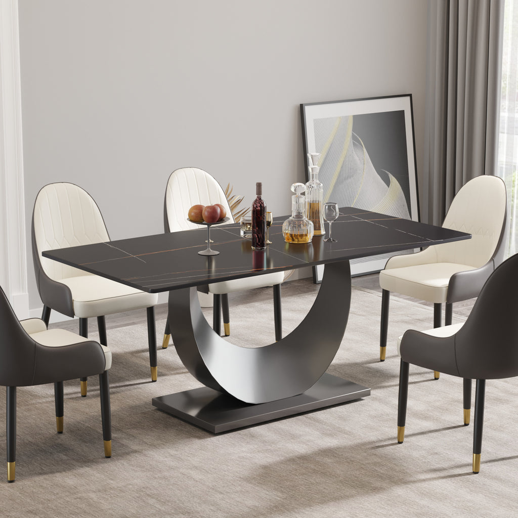 [Black simple appearance] This rectangular dining table is made of artificial stone, and it is made into a perfect dining table with exquisite craftsmanship. It is noble and beautiful.