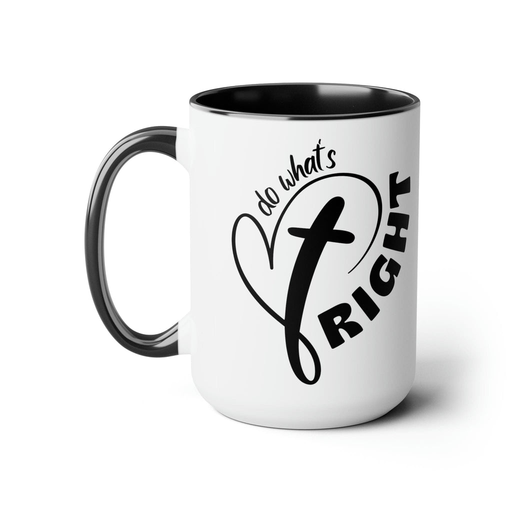 Say It Soul - Do What's Right Black Illustration Ceramic Coffee Mug. Warm-up with a nice cuppa out of this two-tone accent ceramic coffee mug. This mug is perfect for your morning cup of coffee, tea, hot cocoa, or any other hot beverage. It's also great for cold beverages! The ceramic mug is microwave and dishwasher safe. It's BPA and Lead-free, and made of durable ceramic in 15-ounce size.