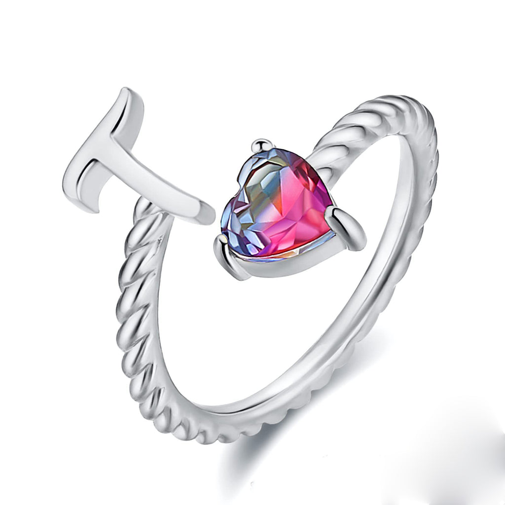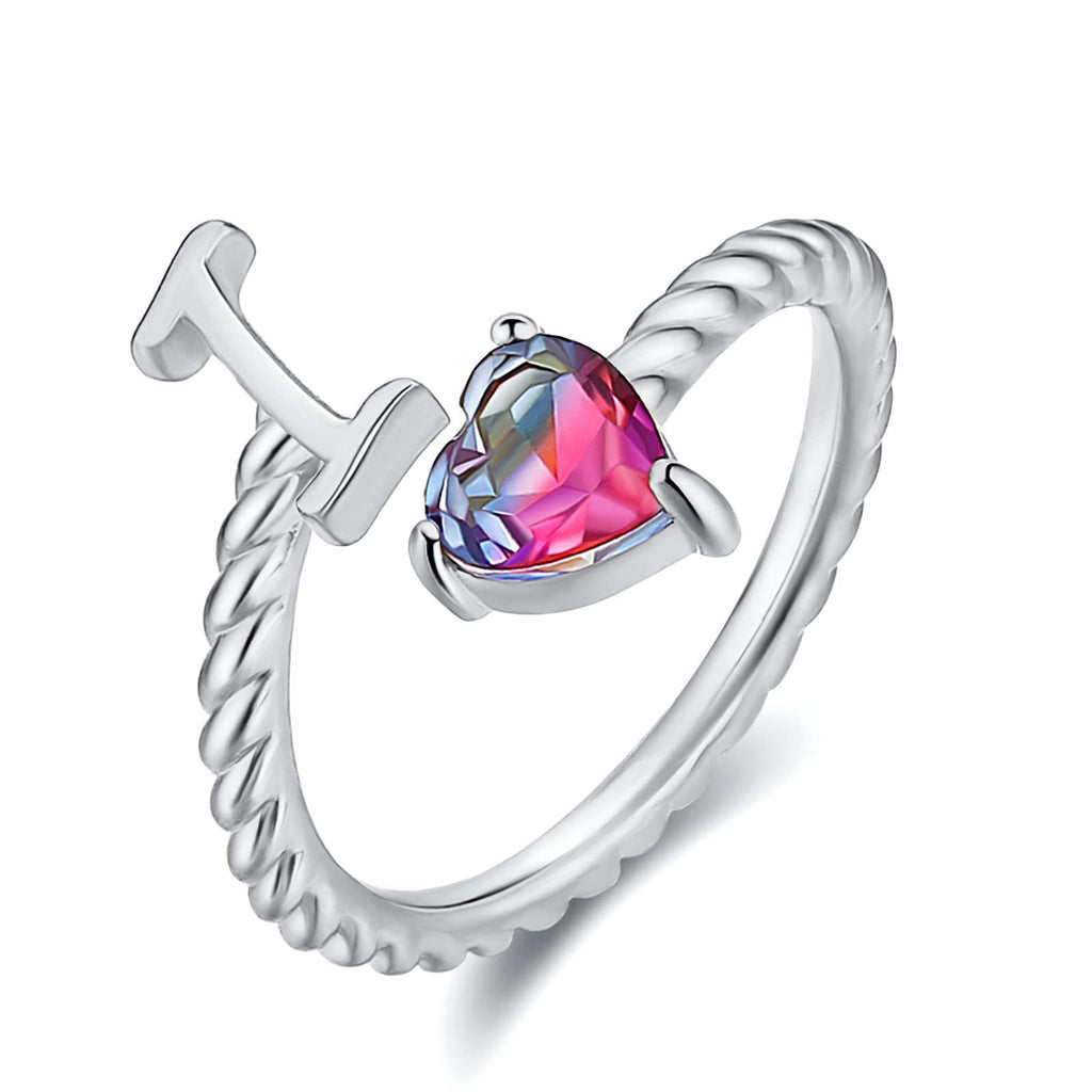 Adjustable A To T Initial Letter Ring 18K Gold Plated Zircon Rings For Girls Women White Gold Plated Stacking Ring Birthday Jewelry Gift For Mom Girlfriend