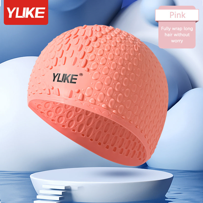 Adult Silicone Swim Cap; Unisex Water Drop Swimming Cap; Comfortable Non-slip Bathing Caps For Short Medium Long Curly Hair