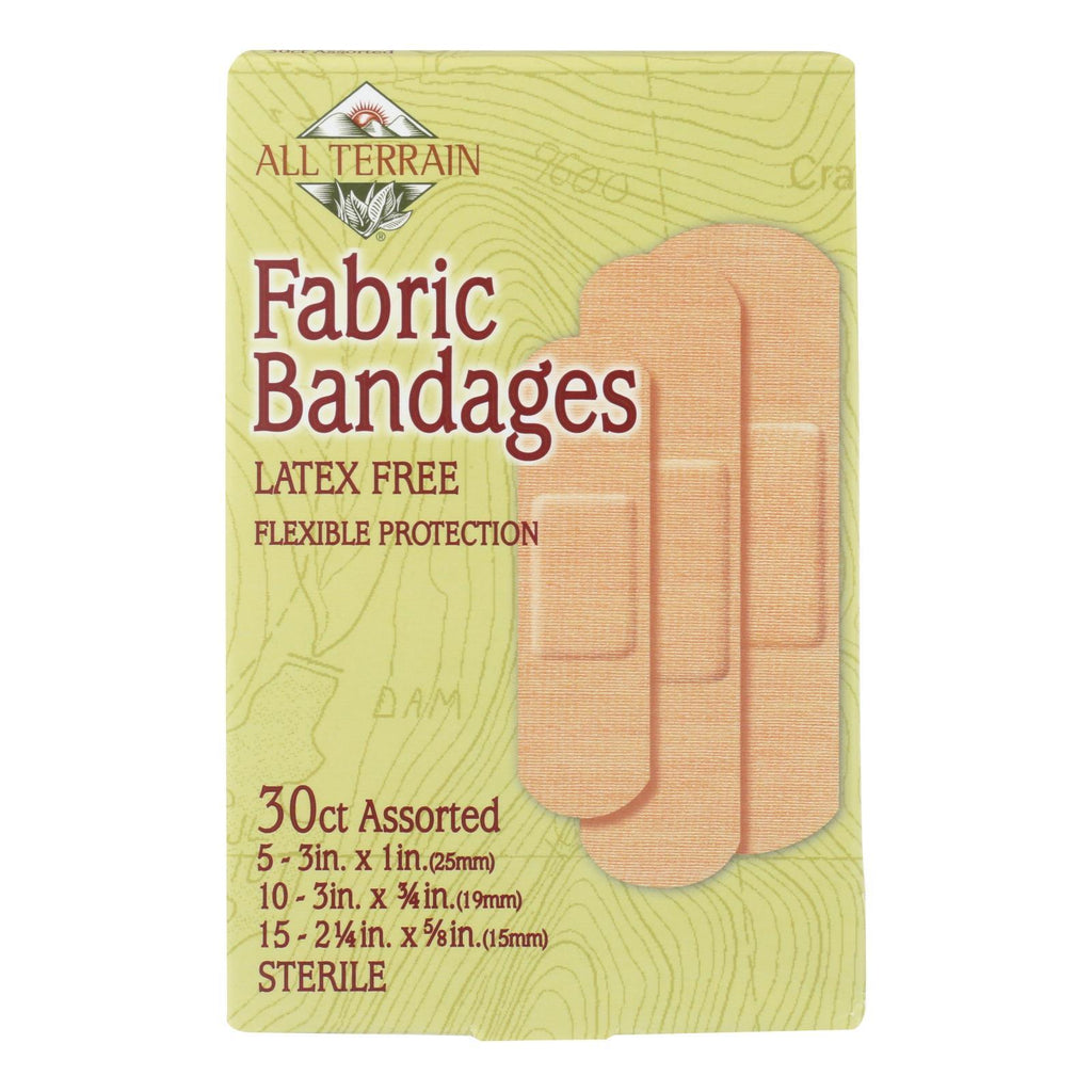 All terrain sterile fabric bandages assorted latex free description: latex free no animal testing 100% sterile strips all terrain's latex free bandages, are ideal for anyone with sensitive skin. Ecoguard bandages are 100% sterile absorbant, non-stick pads. Made with recycled pvc plastic and water-based adhesive. Most bandages use alcohol-based adhesive which can irritate the skin. All natural ecoguard bandages are not tested on animals. 100% sterile guaranteed. Disclaimer these statements have not been evaluated by the fda. These products are not intended to diagnose, treat, cure, or prevent any disease.