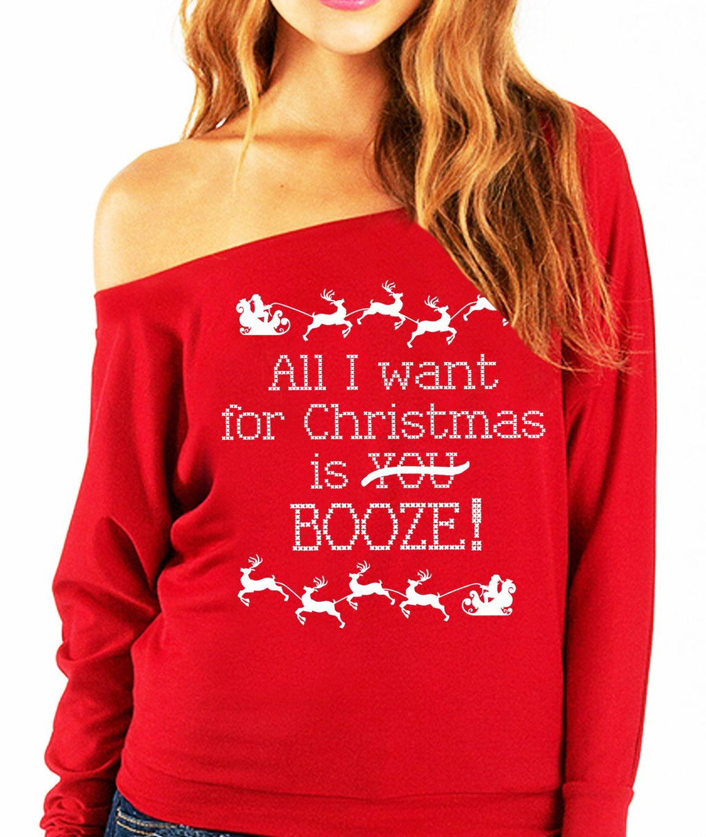 "ALL I WANT FOR CHRISTMAS IS BOOZE" Women's Christmas Slouchy Sweatshirt