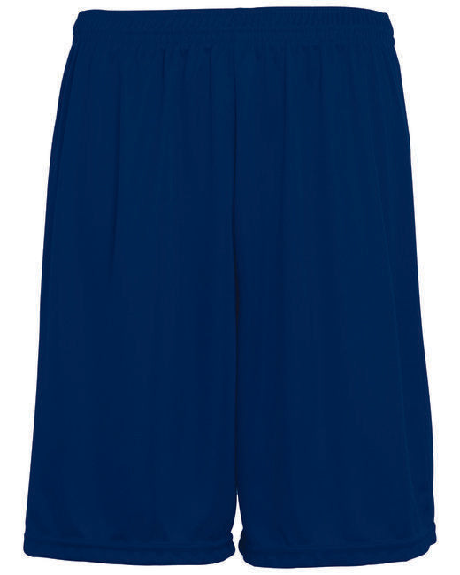 100% polyester wicking knit; Wicks moisture away from the body; Full-cut; Heat-seal label; Covered elastic waistband with inside drawcord; Side-seam pockets; 9" inseam;