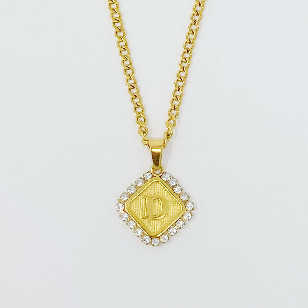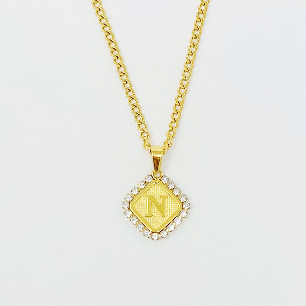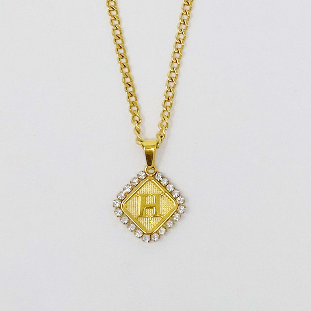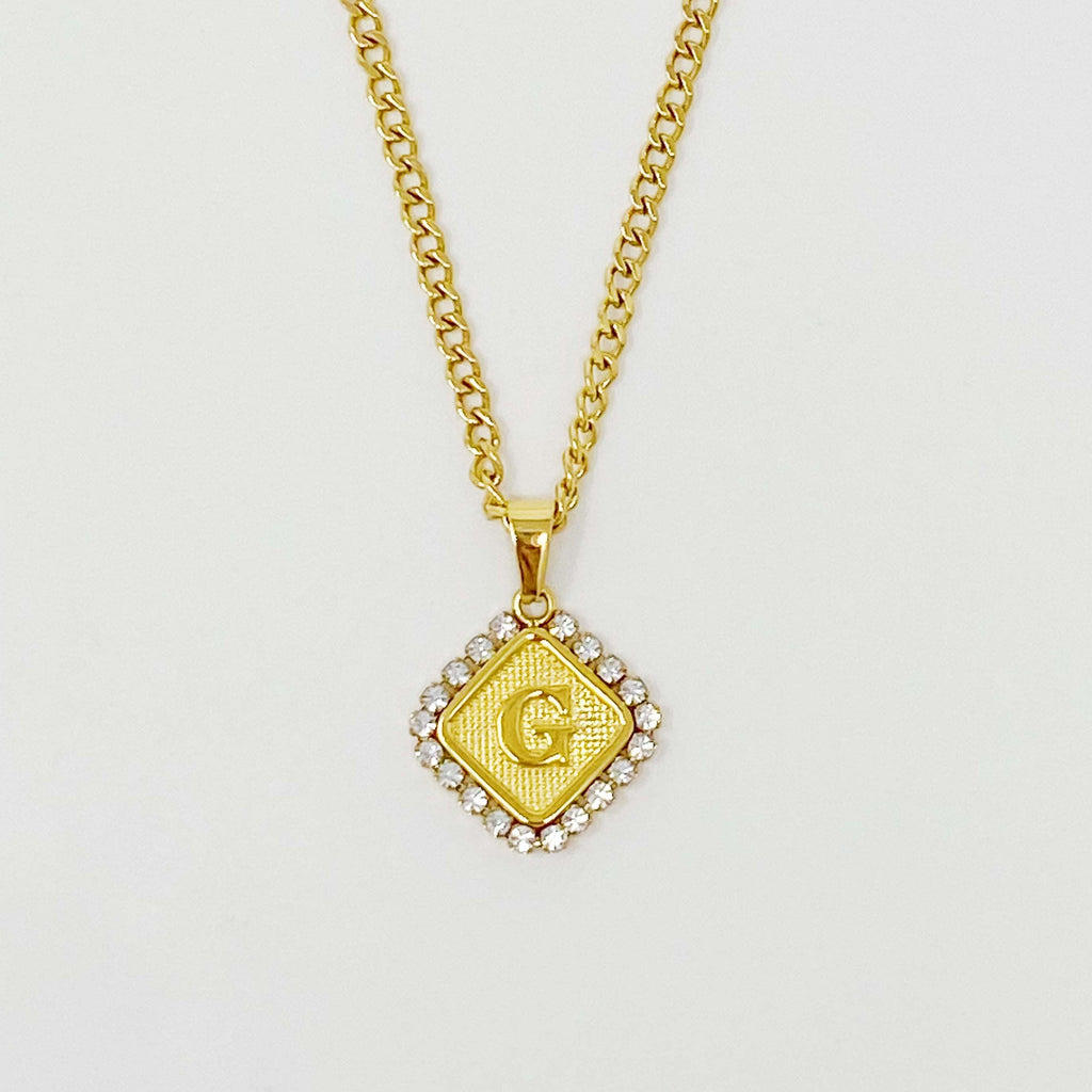 Stylish slim cuban chain and initial charm with CZ all around. Excellent on details, tarnish free stainless steel with high quality plating.