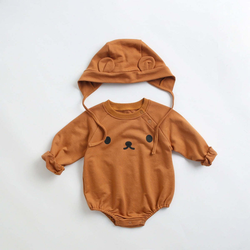 Keep your baby comfy and cute with this one-piece; cartoon-patterned cotton onesie with a matching hat. With its snug fit and soft fabric; this onesie will have them looking and feeling like the little hero they are. Ready for adventure! (And maybe a nap.)