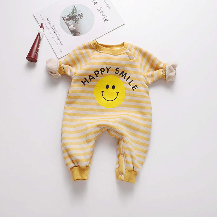 This adorable baby romper jumpsuit has it all—stripes; dots; and long sleeves! Keep your cutie cozy and stylish with this one-stop shop for head-to-toe fashion. Get ready to 'ooh' and 'ahh' over your tiny trendsetter!