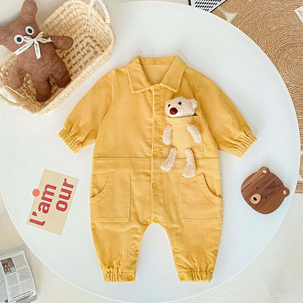 This baby romper is crafted with a soft fabric and features a vibrant cartoon bear patch design and a button front closure. It is designed for maximum comfort and flexibility; with a gentle feel on your baby's delicate skin.