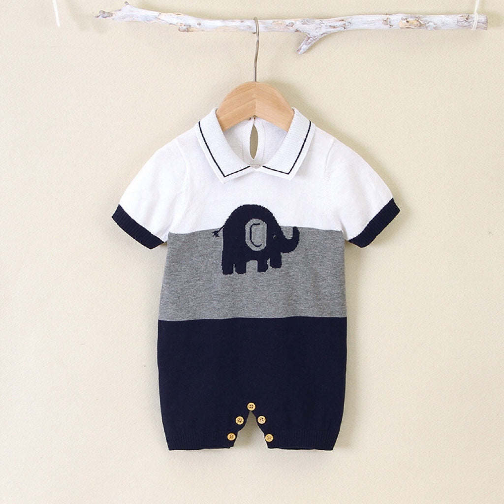 This exclusive Baby Boy 1pcs Elephant Embroidered Graphic Contrast Design Crotch Romper exudes tasteful classic style. Crafted with a luxurious combination of contrast design; embroidered elephant graphic and sophisticated detailing; this garment effortlessly conveys refined luxury. Perfect for special occasions.