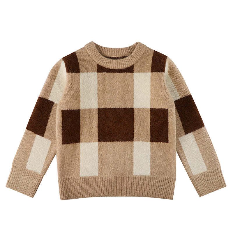 This Baby Boy Plaid Graphic O-Neck Long Sleeves Western Classic Sweater exudes elegance and sophistication with its luxury plaid graphics; classic O-neckline and timeless long sleeves offering refined charm and comfort. Perfect for all occasions; this sweater is sure to keep your little one looking dapper.