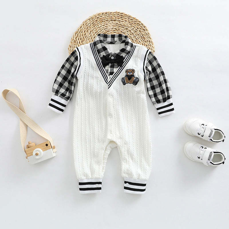 Make your little one stand out with this Baby Boy Plaid Patchwork Pattern Bear Embroidered Jumpsuit! This adorable outfit combines classic plaid with soft and comfortable cotton to create an eye-catching fashion statement. With an awesome bear patch and fluffy embroidered details; you'll be sure to turn heads. Would you love to make your little one shine? Get this jumpsuit today!