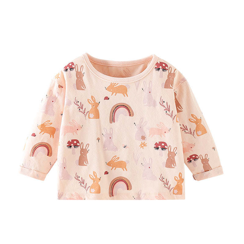 Dress your baby girl up in style with our soft; comfy Baby Girl Cartoon Bunny Print Pattern Soft Cotton Comfortable Shirt! With its playful cartoon bunny design; this shirt is sure to put everyone in the spring spirit — and of course; your little princess will be the cutest of them all! So come hop to it and get this shirt for your daughter today!