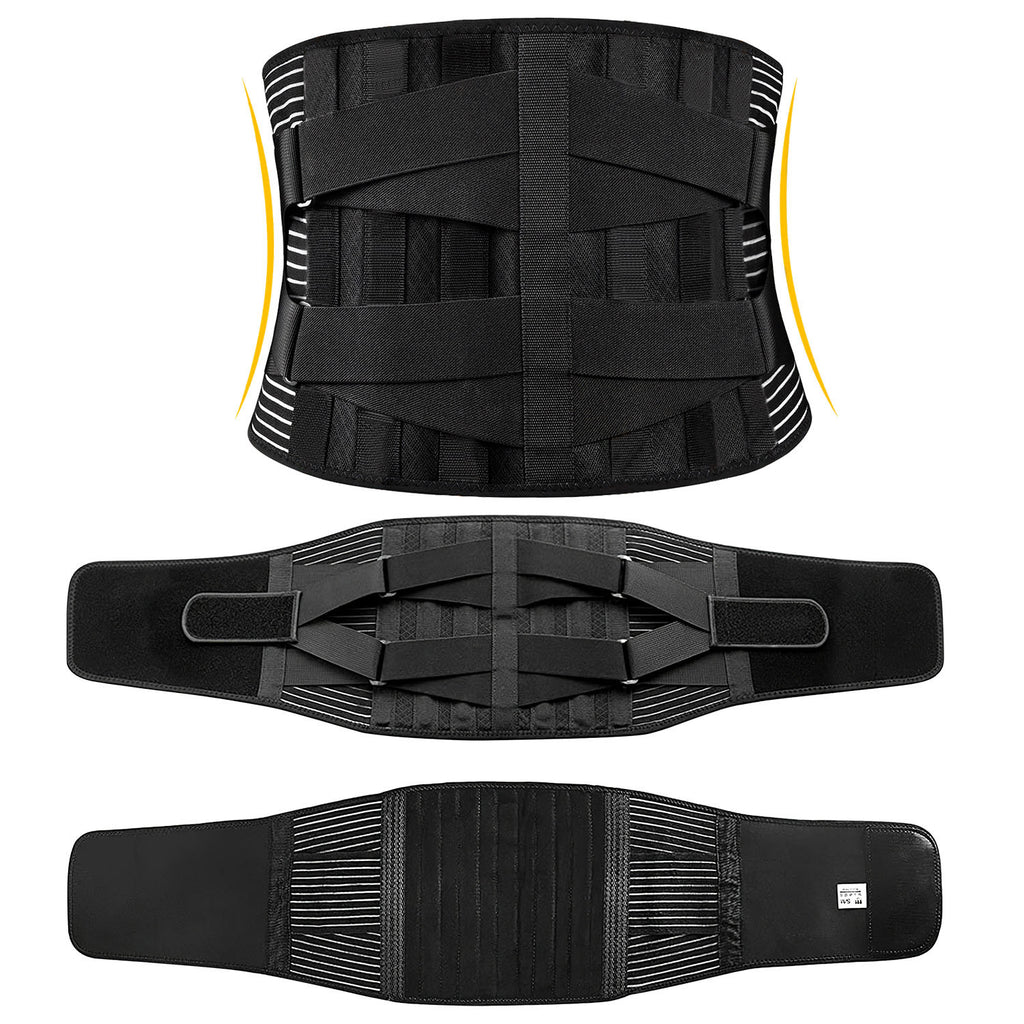 *Strong Supports*:Supported with 4 metal stays at back and 2 steel springs at the waist side; the lumber support brace can give your back strong and flexible support; preventing your waist from undue using and achieving spine decompression.