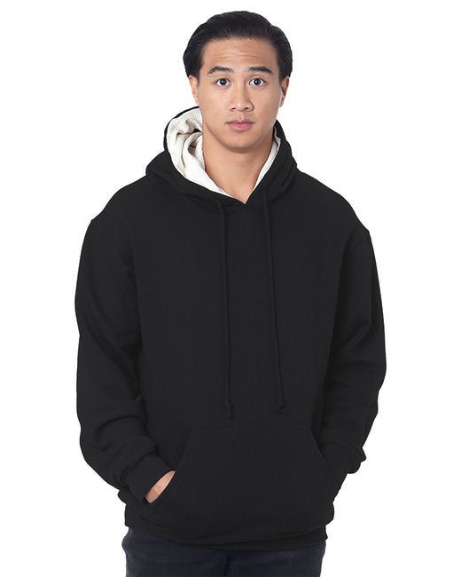 17 oz. ; 80% cotton, 20% polyester ; 100% cotton waffle thermal lining; High-quality, heavyweight pre-shrunk fabric; Contrast lining; Matching drawstrings on double-lined hood; Spandex in cuff and band with front muff pocket;