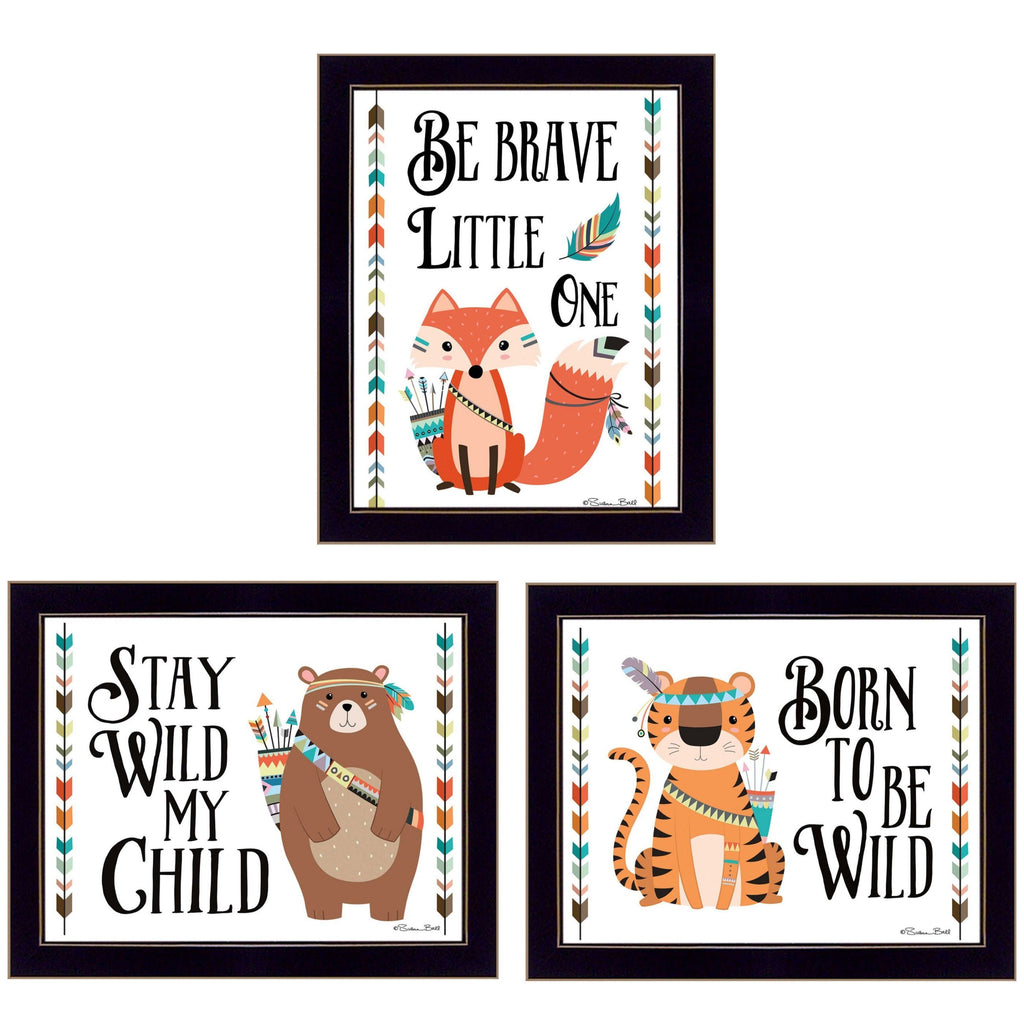 Be Brave little One -3 children's framed prints(18 x 14) in this set of prints by Susie Boyer. Fun loving framed prints for a colorful attraction in a child's room. Each decorative black textured framed print arrives ready to hang. (no need for glass, protected by the texture•Women Owned (WBE)•Textured Artwork with a 'rolled on' acid free acrylic coating to create a canvas painting effect. No glass is necessary.•UV protectant coating protects artwork from fading.•Arrives Ready to Hang