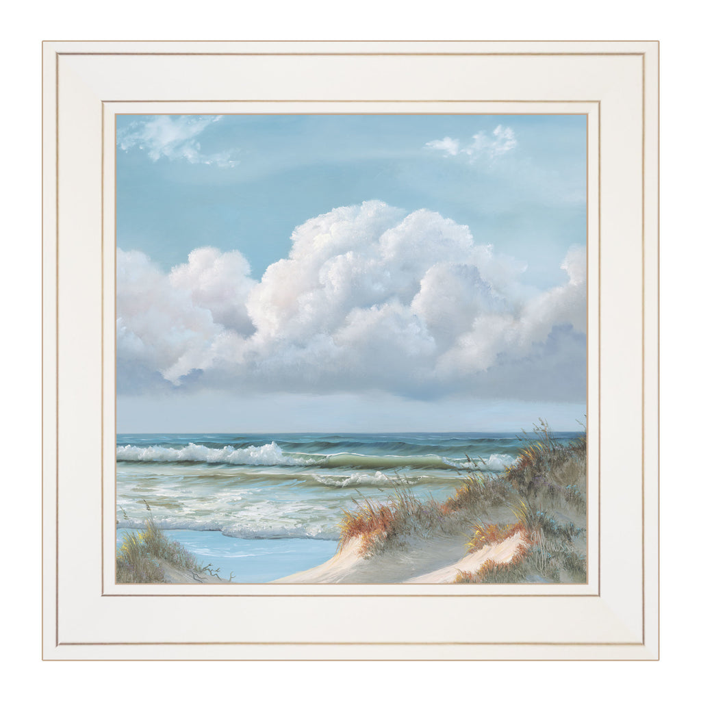 JAN172-226G "Beautiful-Day Triptych III " is by American artisan Georgia Janisse this 15"x15" white-framed wall art features ocean scene. The beautiful day at the beach with the waves crashing on the shoreline. The dunes in the front of the image gives the viewer a sense of resting on the beach watching the tide come in. Our products are proudly made by skilled American workers. The surface of our framed art is textured with a fade resistant coating, so no glass is necessary. A vegetable-based glue is used in the production of our products, and our frames are crafted from 100% recycled material. In keeping with our environmentally friendly approach toward manufacturing. •Print has fade resistant surface texture, no glass is necessary•Woman Owned Business (WBE)•Arrives ready to hang, no additional hardware needed on item•Individually hand crafted by skilled American workers•Clean with Soft Dry Cloth Only