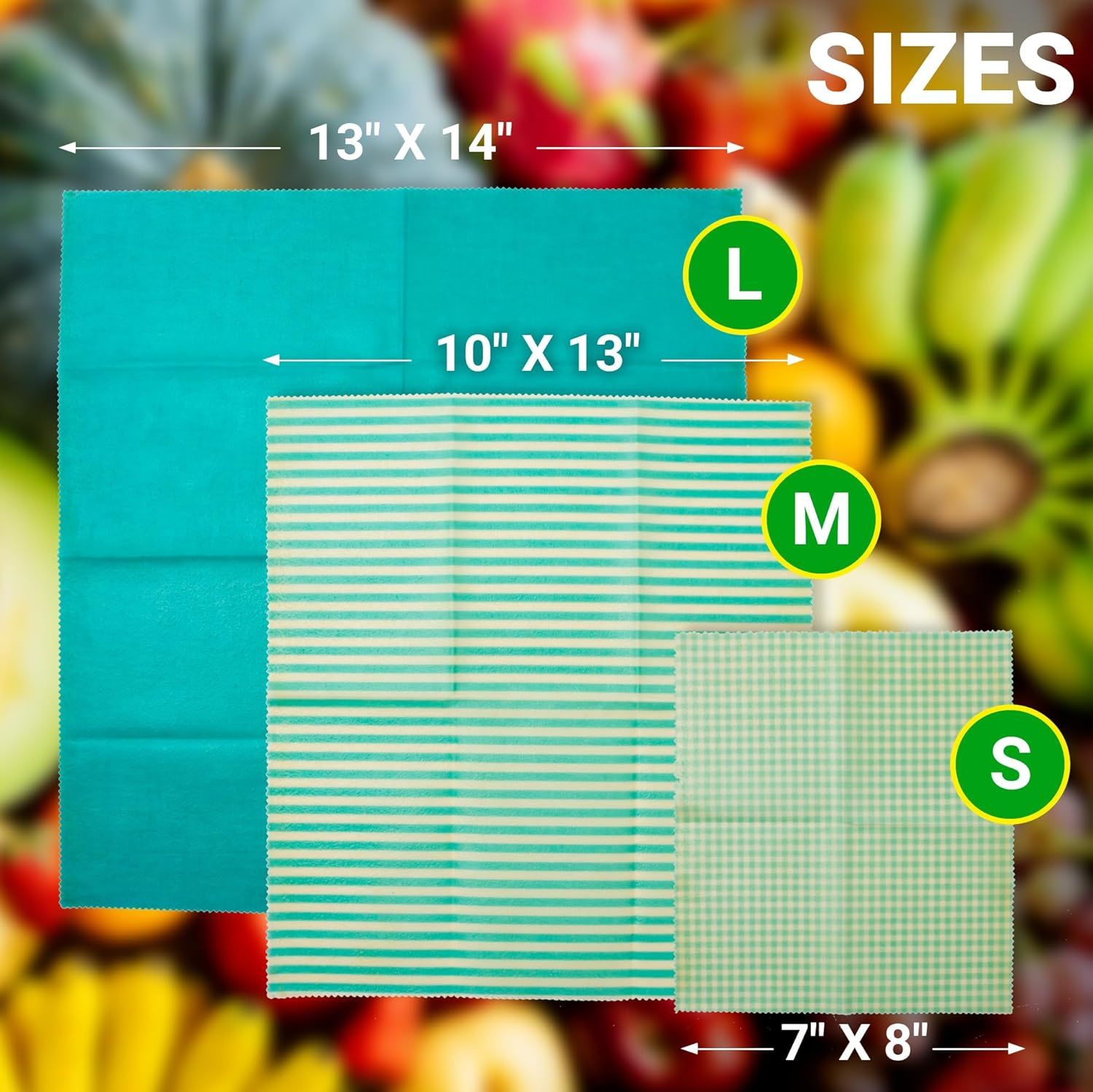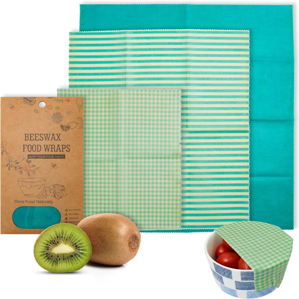 Soy Wax Food Wraps. Pack of 3 Assorted Organic Soy Wax Wrapping Papers with Stars. Reusable Set of Small; Medium; Big Natural Cloth Wrappers.