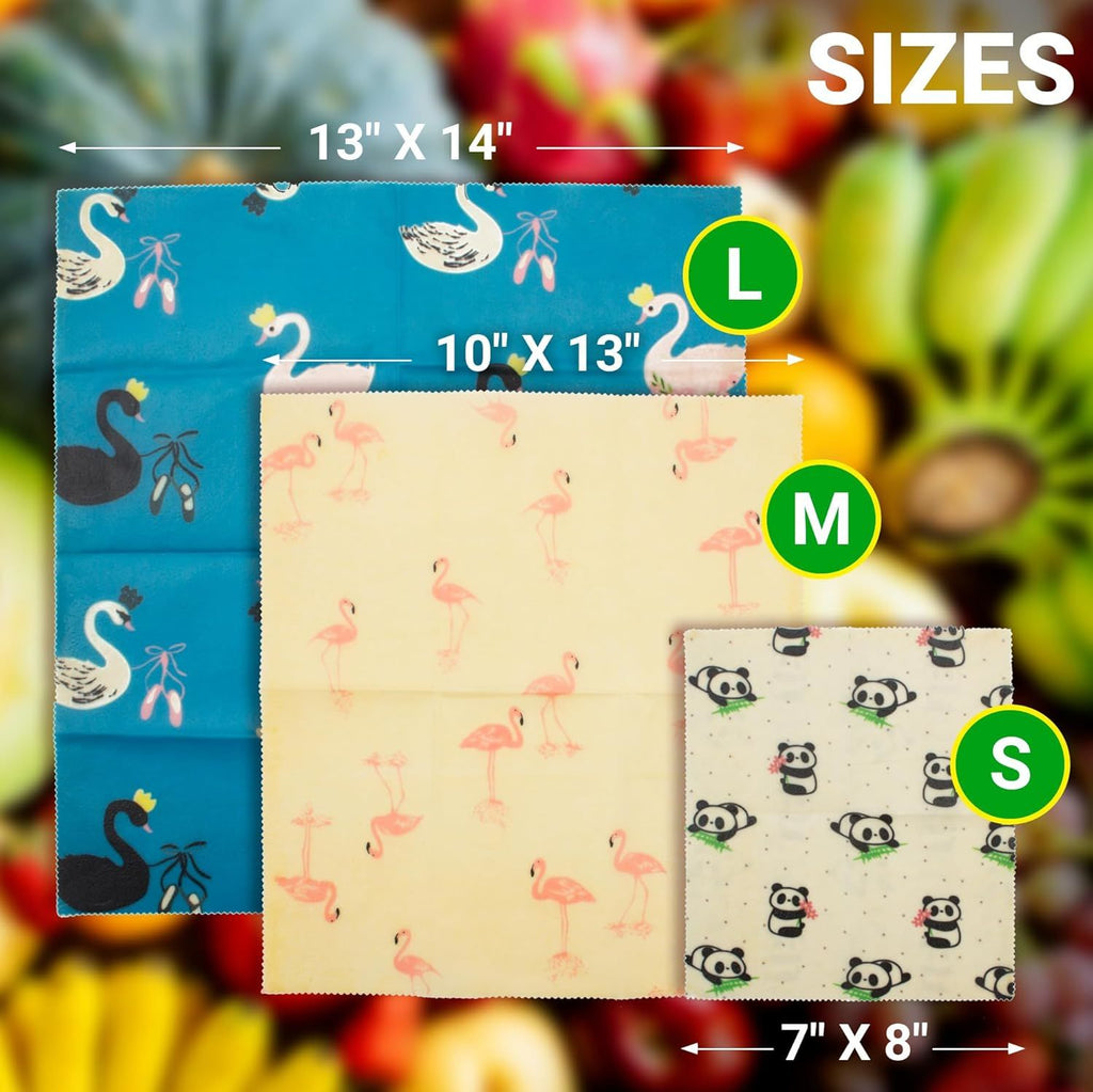 Beeswax Food Wraps. Pack of 3 Assorted Organic Bee Wax Wrapping Blue Papers. Reusable Set of Small; Medium; Big Natural Cloth Wrappers.