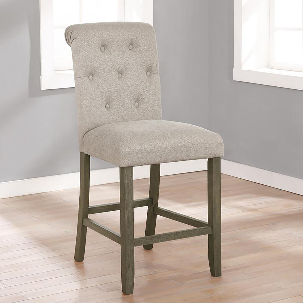 This set of two counter height stools hit the sweet spot between style and function. Its transitional design is enhanced with a button tufted backrest and cozy cushioning, making meals more enjoyable for all occasions.