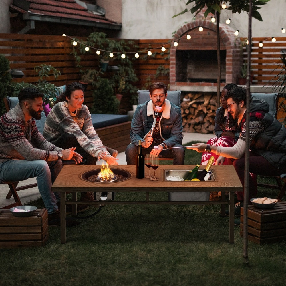 A practical fire pit table for warm gatherings, a refreshing ice bucket table for chilled beverages, and a stylish coffee table for cherished moments. Elevate your outdoor experience with this space-saving design.
