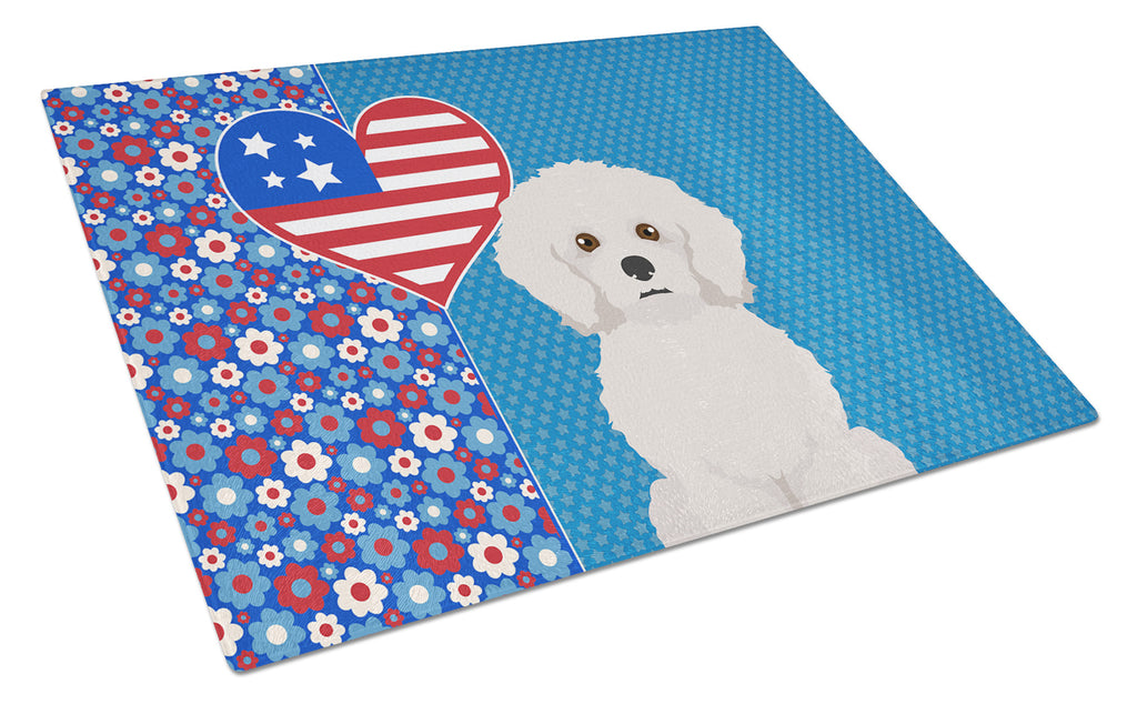 Glass Cutting Board featuring breed specific Bichon Frise artwork. This Glass Cutting Board is from Caroline's Treasures collection USA Love America. Introduce your kitchen to the vibrant, large Decorative Glass Cutting Board from Caroline's Treasures. Crafted from resilient tempered glass, this board is not only a utilitarian necessity but also a colorful art piece. With its generous dimensions of 15 inches in height and 12 inches in length, it offers ample space for all your cutting needs. Every piece showcases captivating artwork from distinguished artists, bringing an aesthetic edge to your kitchen. Beyond its attractive design, this cutting board ensures your countertop stays pristine and unscathed, owing to its heat-resistant properties. Engineered with user convenience in mind, it features non-skid feet for stability, and rounded corners for additional safety. Its robust construction renders it virtually unbreakable, guaranteeing longevity. The board comes with protective feet bumpers, maintaining its position during use. This product is recommended to be hand washed only. Proudly printed and assembled in the United States, this cutting board exemplifies superior craftsmanship. With Caroline's Treasures' Decorative Glass Cutting Board, you're investing in a blend of functionality and artistic flair. This Cutting Board is from Caroline's Treasures Dogs category of products.