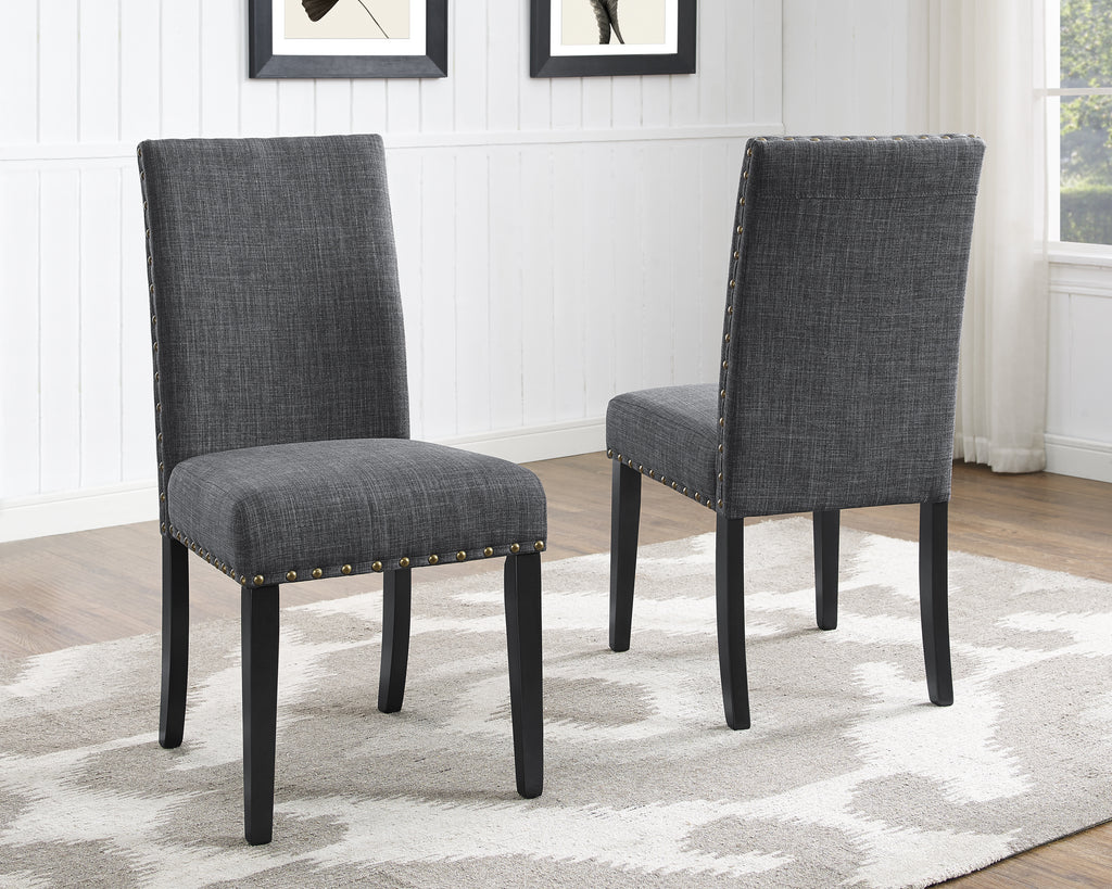 Set of 2 enticing nailhead trim dining chair, gray-colored linen and cotton fabric upholstery on the seat and chair back.