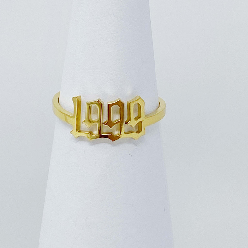 Year of 1993 - 2003 in old English font ring. Great to stack up with other rings. Slim shape makes the ring look nice on any fingers and blend in with any styles.
