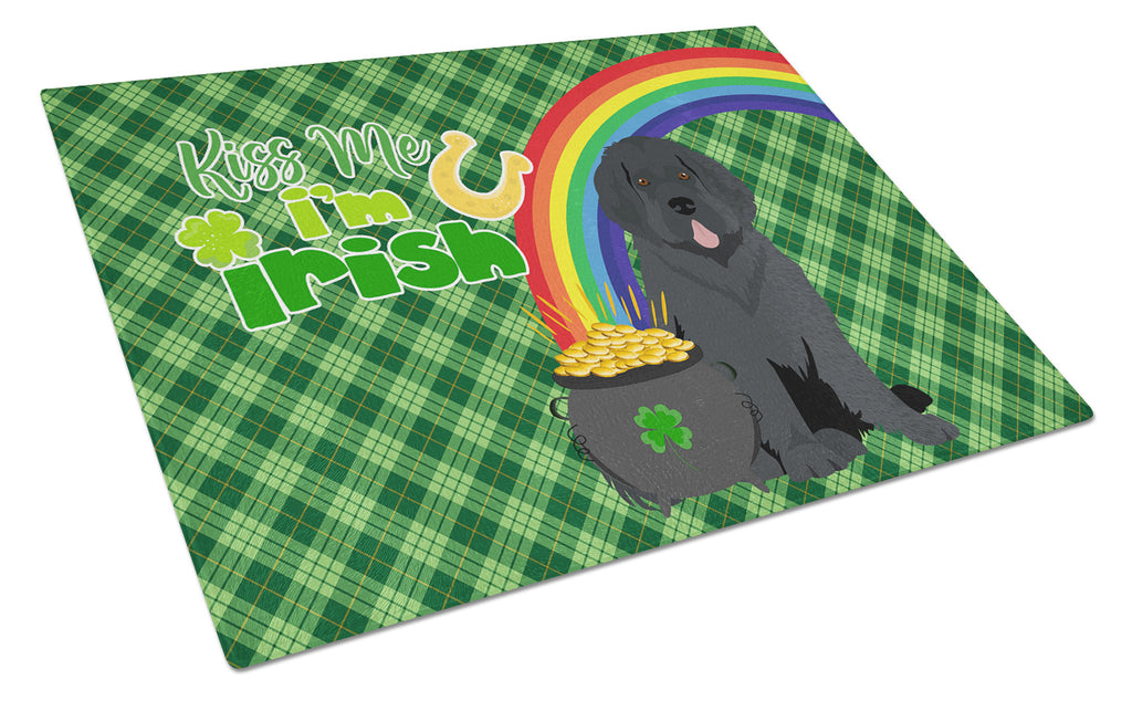 Glass Cutting Board featuring breed specific Newfoundland artwork. Celebrate St Patrick's Day with this St Patrick's Day Cutting Board. This Glass Cutting Board is from Caroline's Treasures collection Kiss me I'm Irish. Introduce your kitchen to the vibrant, large Decorative Glass Cutting Board from Caroline's Treasures. Crafted from resilient tempered glass, this board is not only a utilitarian necessity but also a colorful art piece. With its generous dimensions of 15 inches in height and 12 inches in length, it offers ample space for all your cutting needs. Every piece showcases captivating artwork from distinguished artists, bringing an aesthetic edge to your kitchen. Beyond its attractive design, this cutting board ensures your countertop stays pristine and unscathed, owing to its heat-resistant properties. Engineered with user convenience in mind, it features non-skid feet for stability, and rounded corners for additional safety. Its robust construction renders it virtually unbreakable, guaranteeing longevity. The board comes with protective feet bumpers, maintaining its position during use. This product is recommended to be hand washed only. Proudly printed and assembled in the United States, this cutting board exemplifies superior craftsmanship. With Caroline's Treasures' Decorative Glass Cutting Board, you're investing in a blend of functionality and artistic flair.