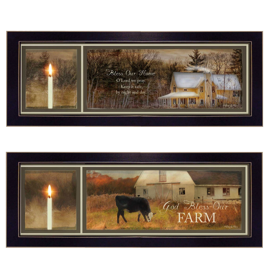 Bless our Home 2 (20x8) framed prints by Robin Lee Vieira. Each print is framed in a decorative black frame; with 1- beautiful home & 1- barn setting with a cow. Each framed print is textured(no need for glass); and arrives ready to hang. •Women Owned (WBE)•Textured Artwork with a 'rolled on' acid free acrylic coating to create a canvas painting effect. No glass is necessary.•UV protectant coating protects artwork from fading.•Arrives Ready to Hang