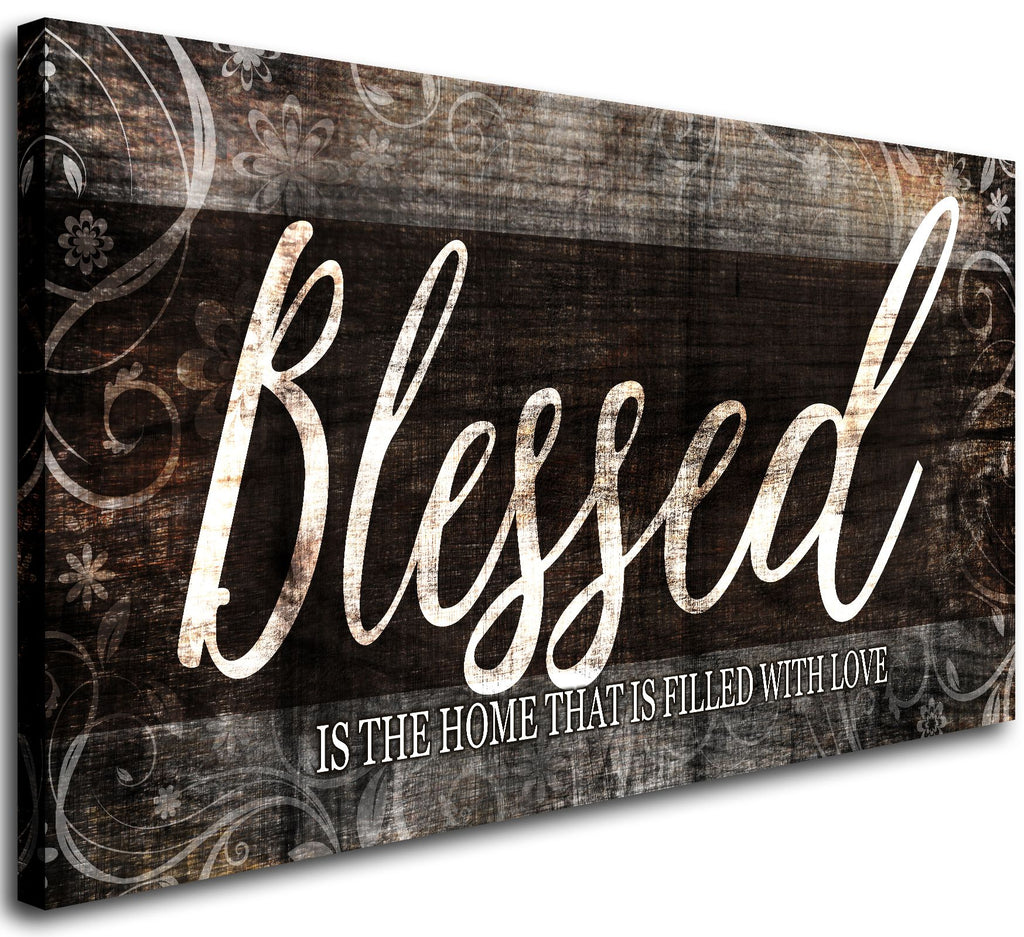 Create a warm, faith-filled environment in your living room, dining room, bedroom, or entryway with our “Blessed Home” Quote Canvas Wall Art. This Christian wall art features a beautiful brown color palette and elegant script, reminding everyone who enters that “Blessed is the home” where faith, love, and peace reside.