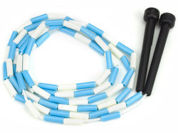 Made by K-Roo Sports, this 7-foot blue and white jump rope is perfect for gyms, schools, sports training or recreational use. Each rope is made with heavy-duty nylon and covered in plastic segments for added durability and colorful fun.