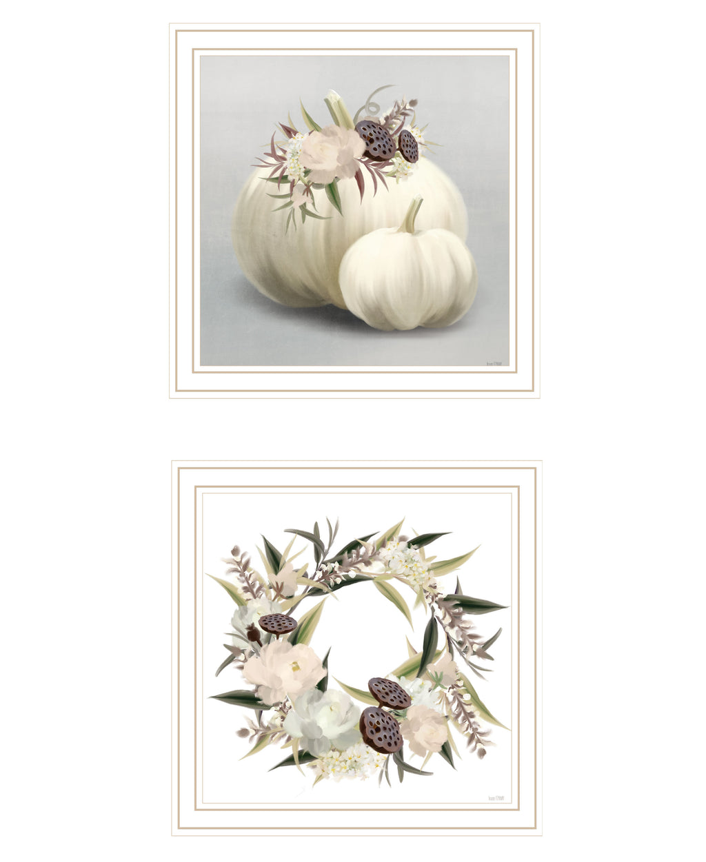 "BOHO Pumpkins and Flowers" 2-Piece Vignette by House Fenway, Ready to Hang Framed Print, White Frame